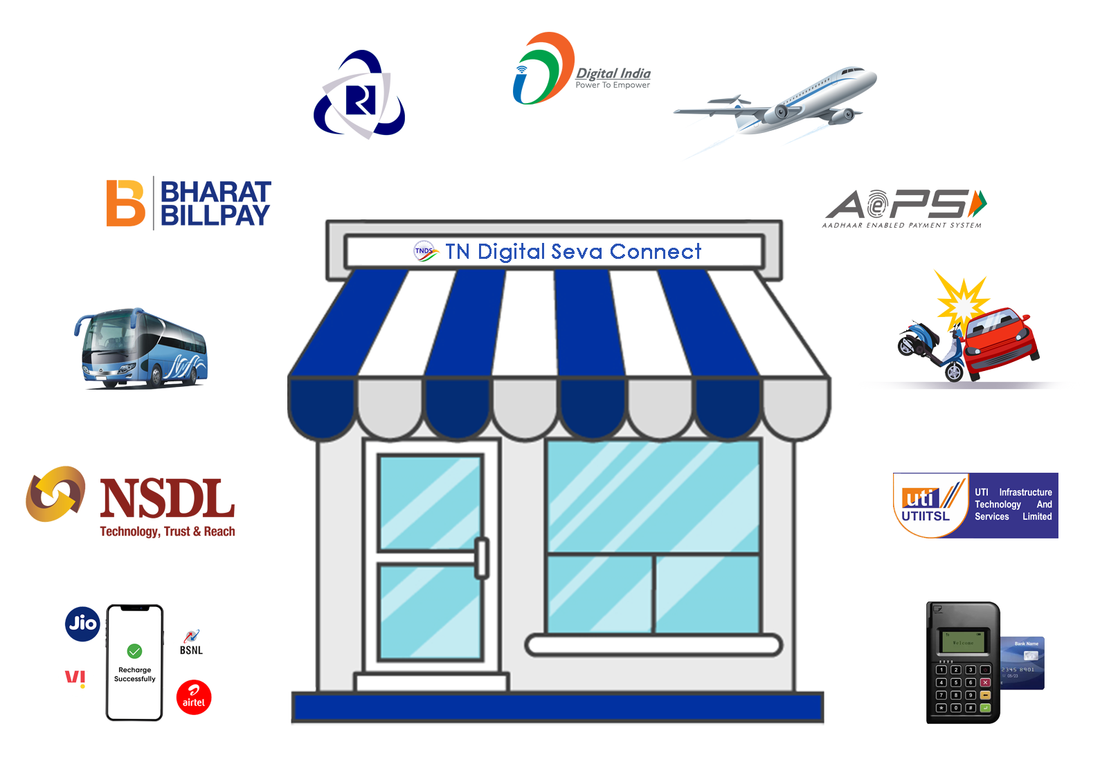 அரசு சேவைகள், சான்றிதழ்கள், முன்பதிவுகள் மற்றும் டிஜிட்டல் சேவைகளை விரைவாகவும், பாதுகாப்பாகவும் உங்கள் வீட்டில் இருந்தே விண்ணப்பித்து பெற்றுகொள்ளலாம்.